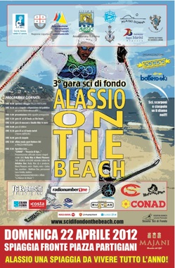 Si è svolta sulla spiaggia di Alassio la terza edizione di “Sci di fondo on the beach” che ha visto la partecipazione di nove squadre contendersi una gara sportivo-goliardica davanti ad un folto pubblico intervenuto sotto il sole che è tornato a splendere in una giornata quasi estiva. Ha vinto la sfida “non competitiva” la squadra, capitanata Marco Visini, di CLUSONE 1 sbaragliando le altre agguerrite equipes di COGNE, CLUSONE 2, PINEROLO, LIMONE PIEMONTE, CONAD, BAGNI MARINI ALASSIO 1 E 2, CLUSONE 3. Nell’arco della giornata si sono poi svolte altre gare: gara di traino dello slittino, vinta dalla squadra di Cogne capitanata da Giuseppe Giovinazzo, gara di ciaspole (tutti contro tutti) vinta dal giovane Balduzzi Davide di Clusone (BG), gara di sci di fondo per turisti vinta da Odasso Stefano per la categoria senior e da Odasso Pietro per la categoria junior entrambe di Ormea (CN). Originale dimostrazione di Shuttle Bike, bicicletta sull’acqua, che ha entusiasmato e sorpreso tutto il pubblico presente. Per l’occasione un riconoscimento è stato consegnato appunto all’azienda Shuttle Bike Kit.